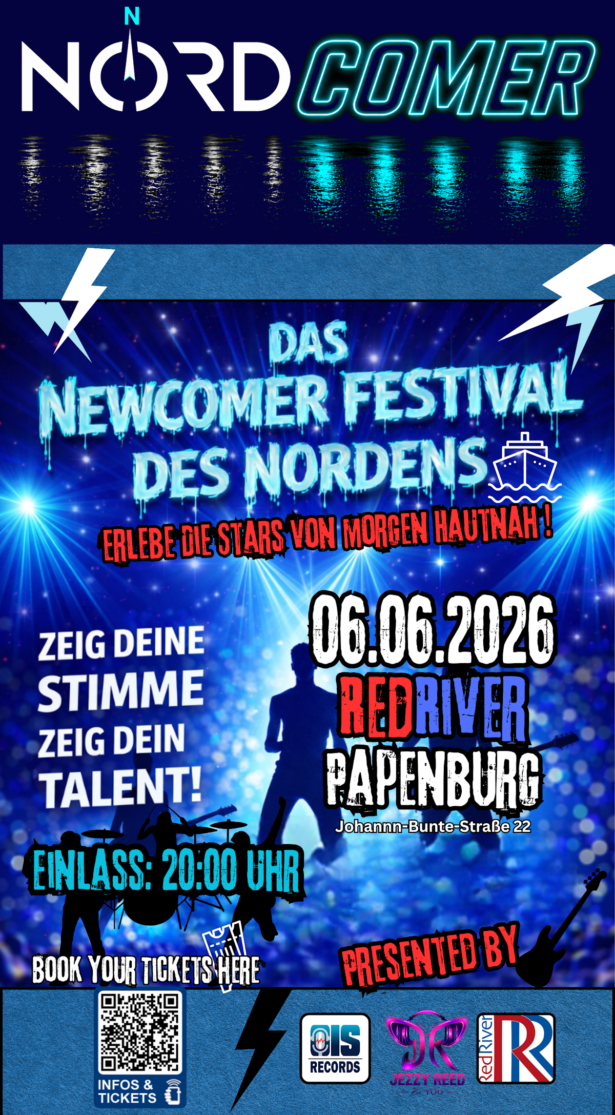 Am 6. Juni 2026 öffnet das RedRiver in Papenburg die Tore zum Newcomer Festival des Nordens – einem Event, das sich der Förderung und Entdeckung aufstrebender Musiktalente verschrieben hat. Über 12 handverlesene Acts aus den verschiedensten Musikrichtungen – von Metal über Pop bis hin zu Rap, Schlager, Country und Jazz – werden die Bühne in Beschlag nehmen und das Publikum mit frischen Klängen begeistern.